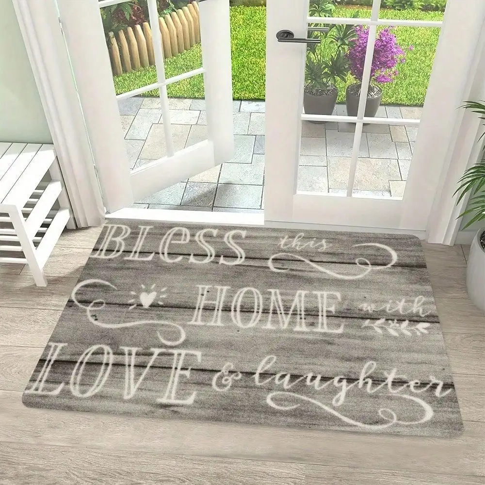 1pc Farmhouse Doormat Bless This Home Welcome Mat Non-Slip Absorbent Bathroom Rug Rustic Wood Print Inspirational Quote Mat